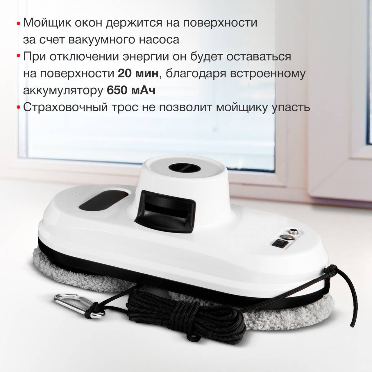 | Комплектация: | Робот-стеклоочиститель, пульт управления, сетевой адаптер, удлинительный кабель питания, страховочный трос, салфетки из микрофибры, руководство пользователя |