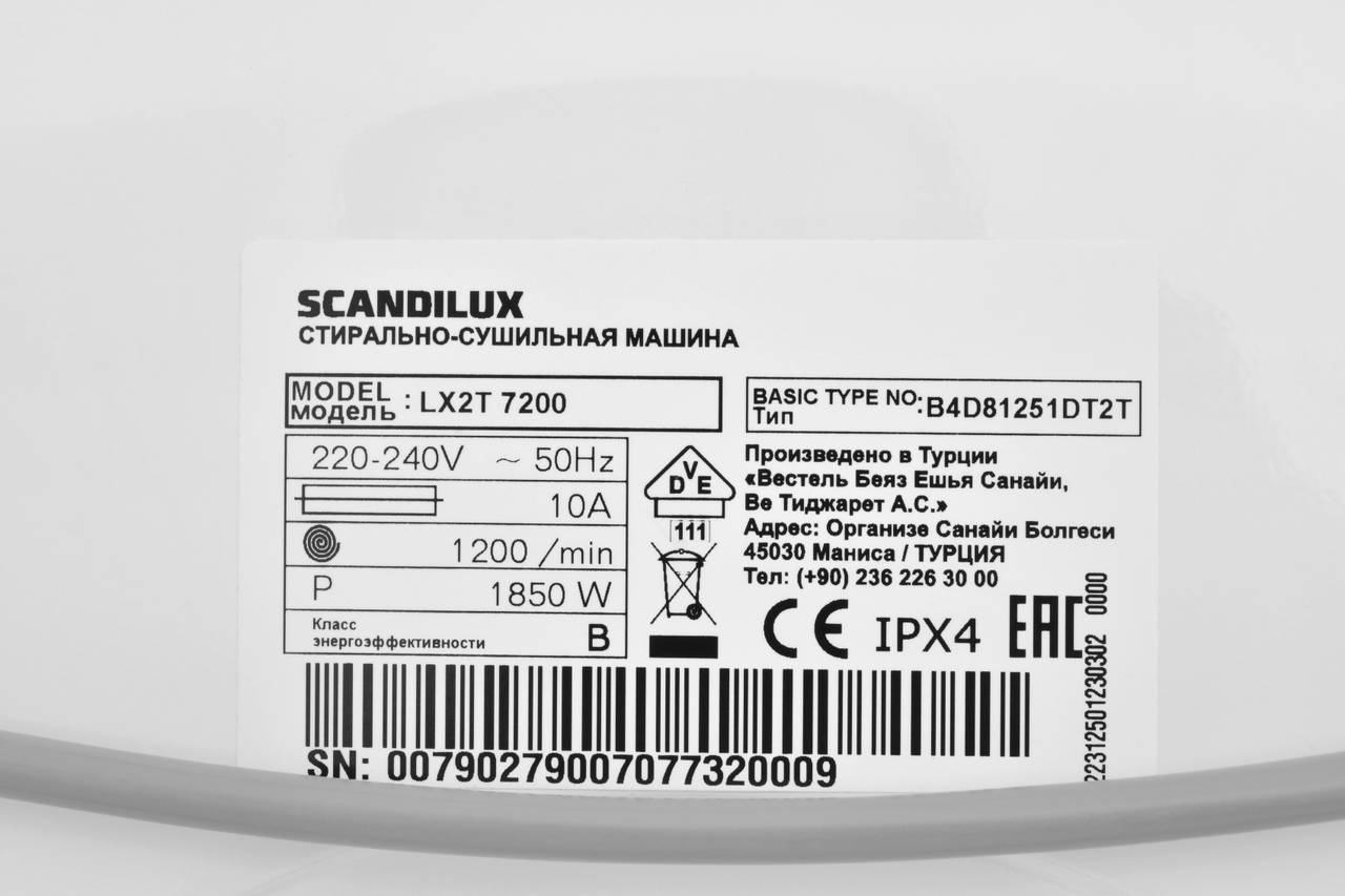 Стиральная машина SCANDILUX LX2T 7200 класс:B загрузка до 7кг отжим:1200об/мин белый