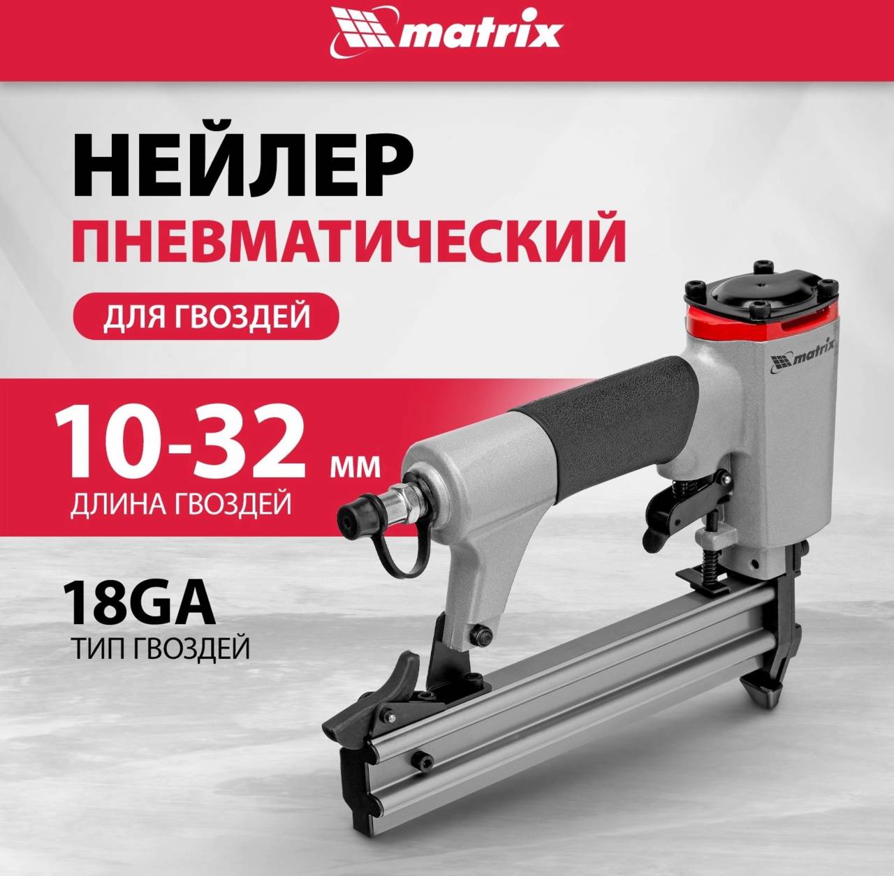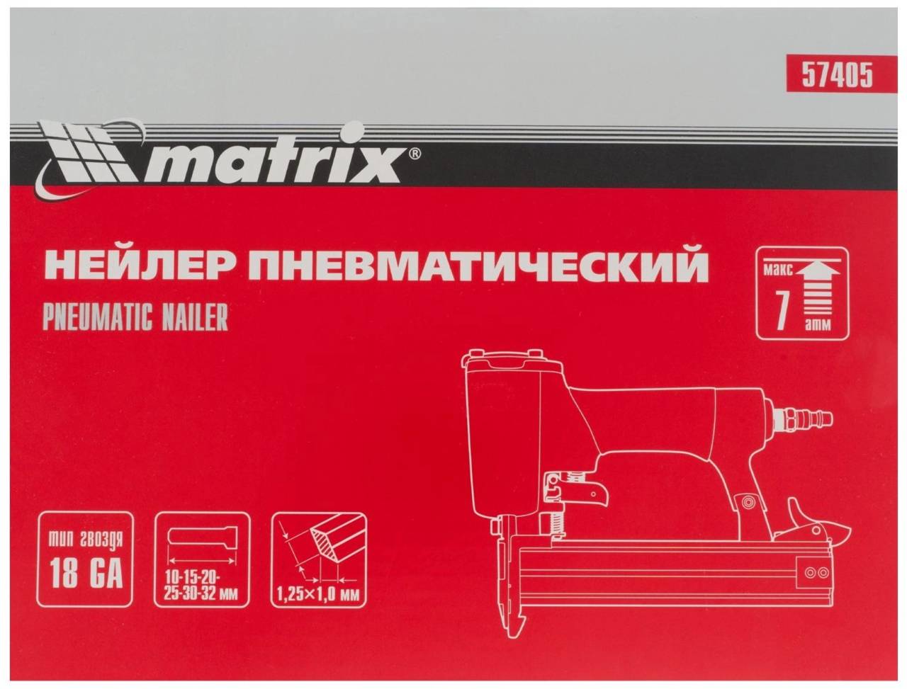 Особенности:Пневматический нейлер Matrix предназначен для гвоздей 18GA от 10 до 32 мм.