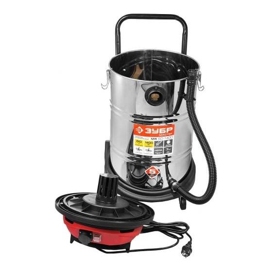 Строительный пылесос ЗУБР Пылесос строительный [ПУ-60-1400 М4] { М4-60, 60 л, 1400 Вт, сухая и влажная уборка, корпус из нержав. стали, розетка до 2000 Вт }