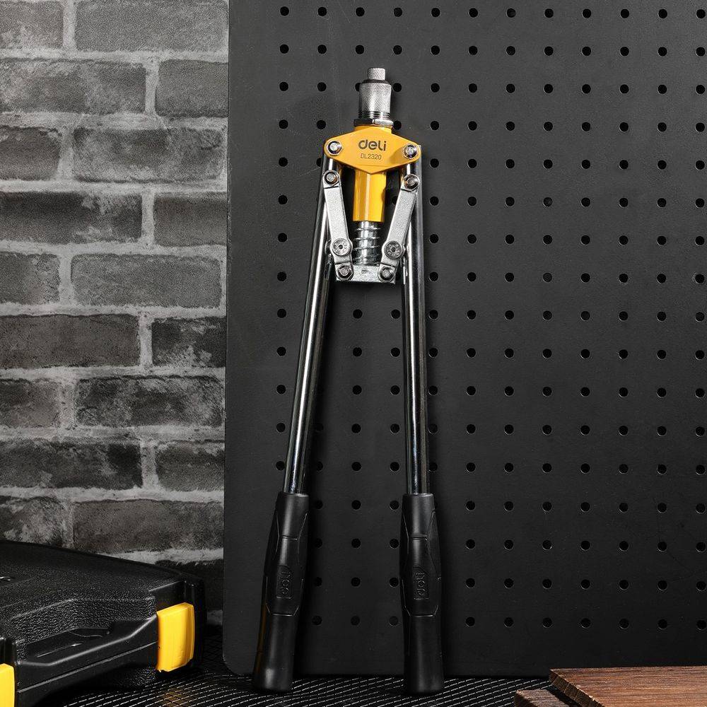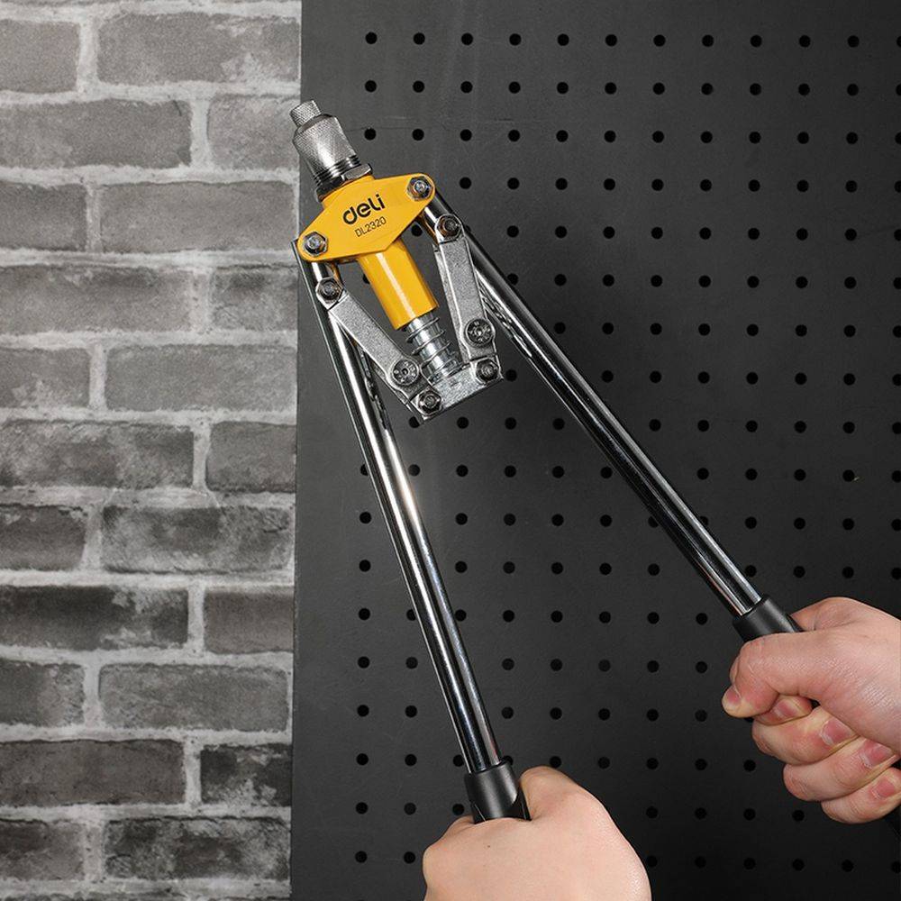 Строительный степлер DELI Двуручный заклепочник DL2320  430мм, сталь Cr-Mo, диаметр заклепок 3,2 / 4,0 / 4,8 мм, прорезиненные рукояти Bad Pack