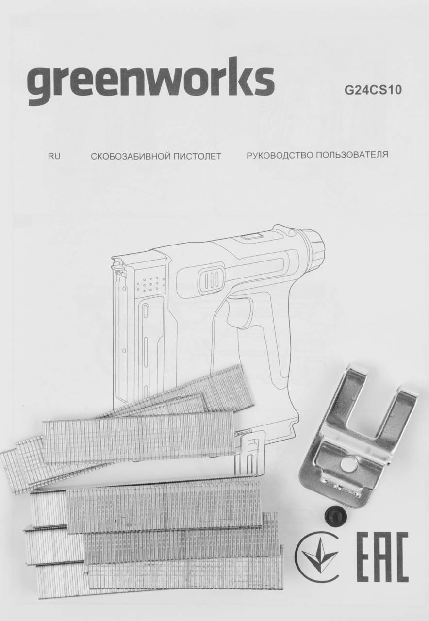 Строительный степлер GREENWORKS Степлер ручной G24CS10 скобы 4/55/90/18GA