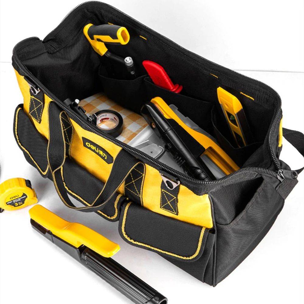 Сумка для инструментов DELI DL430117 400 x 200 x 270мм, 14 карманов, плечевой ремень, ткань Оксфорд Bad Pack