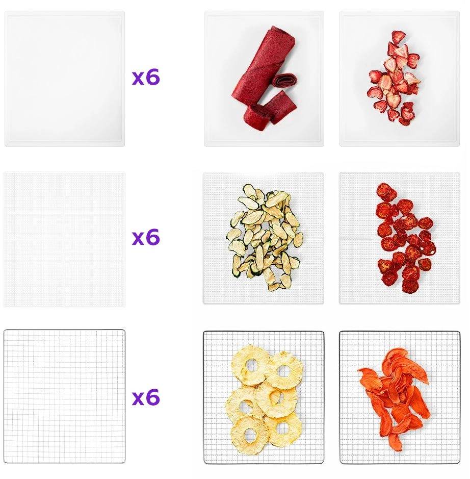 | Комплектация: | 6 металлических поддонов; 6 сеток; 6 пластиковых поддонов |