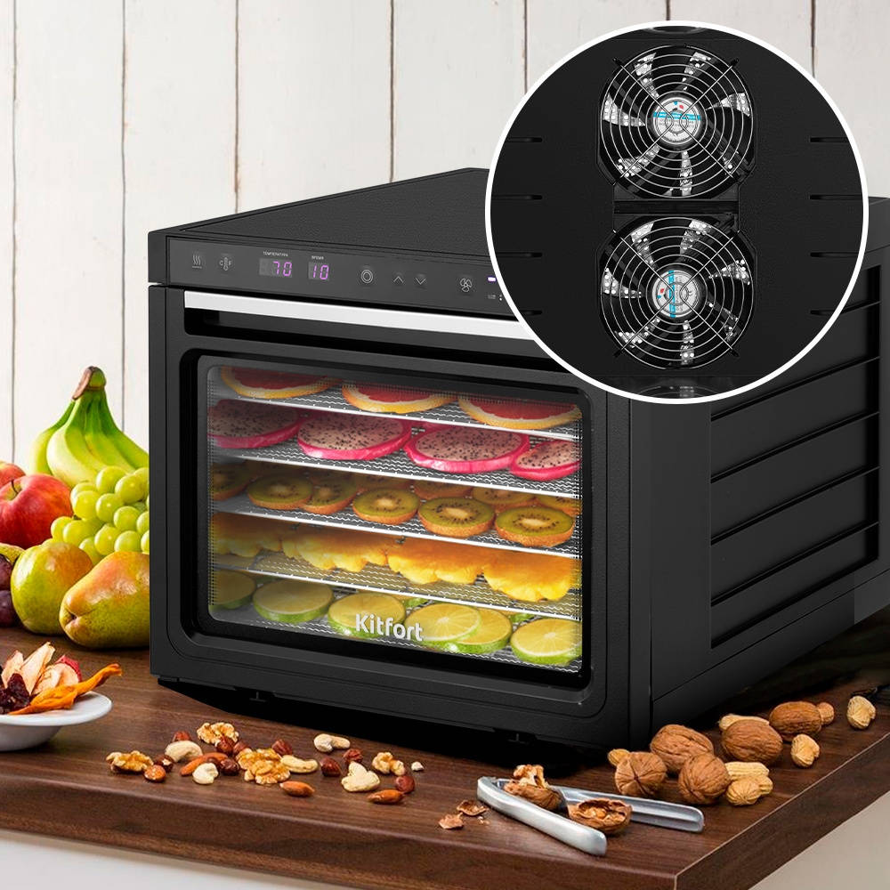 Сушилка для овощей и фруктов KITFORT Сушка для фруктов и овощей КТ-1962 6под. 1000Вт черный