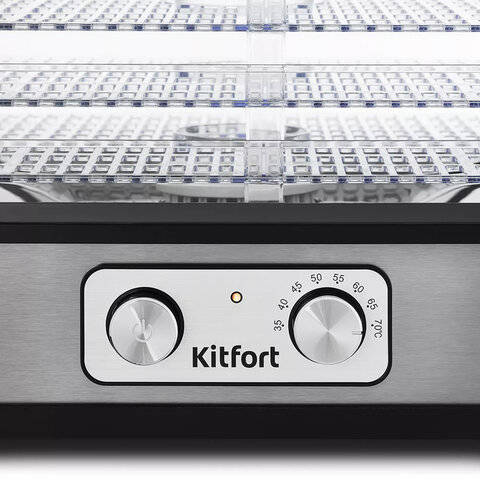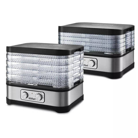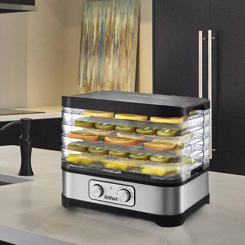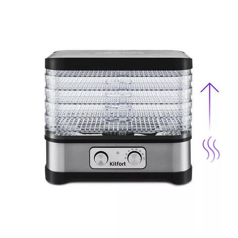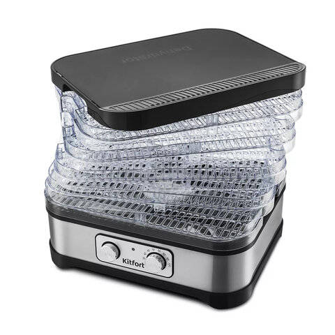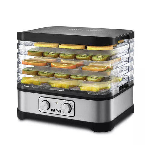 Сушилка для овощей и фруктов KITFORT Сушилка для овощей КТ-1912, 250 Вт, 5 поддонов, механическое управление, черная/серебристая