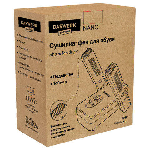 Сушка для обуви DASWERK Сушилка для обуви, варежек, перчаток, складная, с подсветкой и таймером, 110 Вт, NANO SD12, 456789