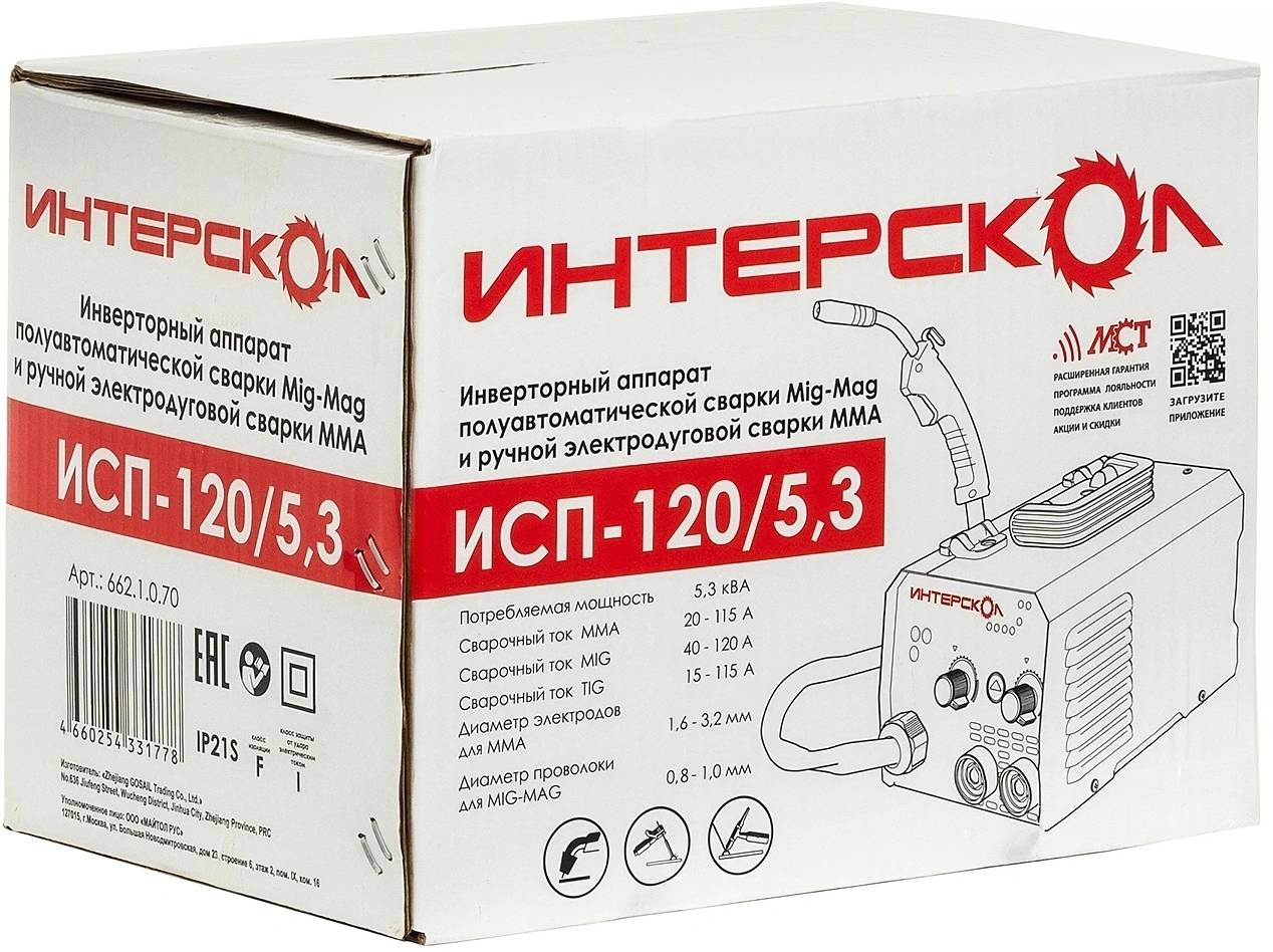 Сварочный аппарат Интерскол ИСП-120/5,3 инвертор MMA/TL/vrd 4кВт
