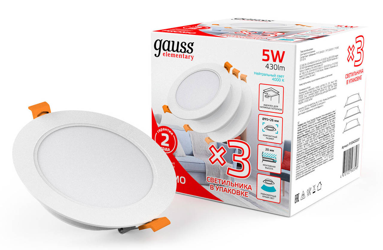 Светильник GAUSS Elementary Downlight 5Вт 4000K белый круглый