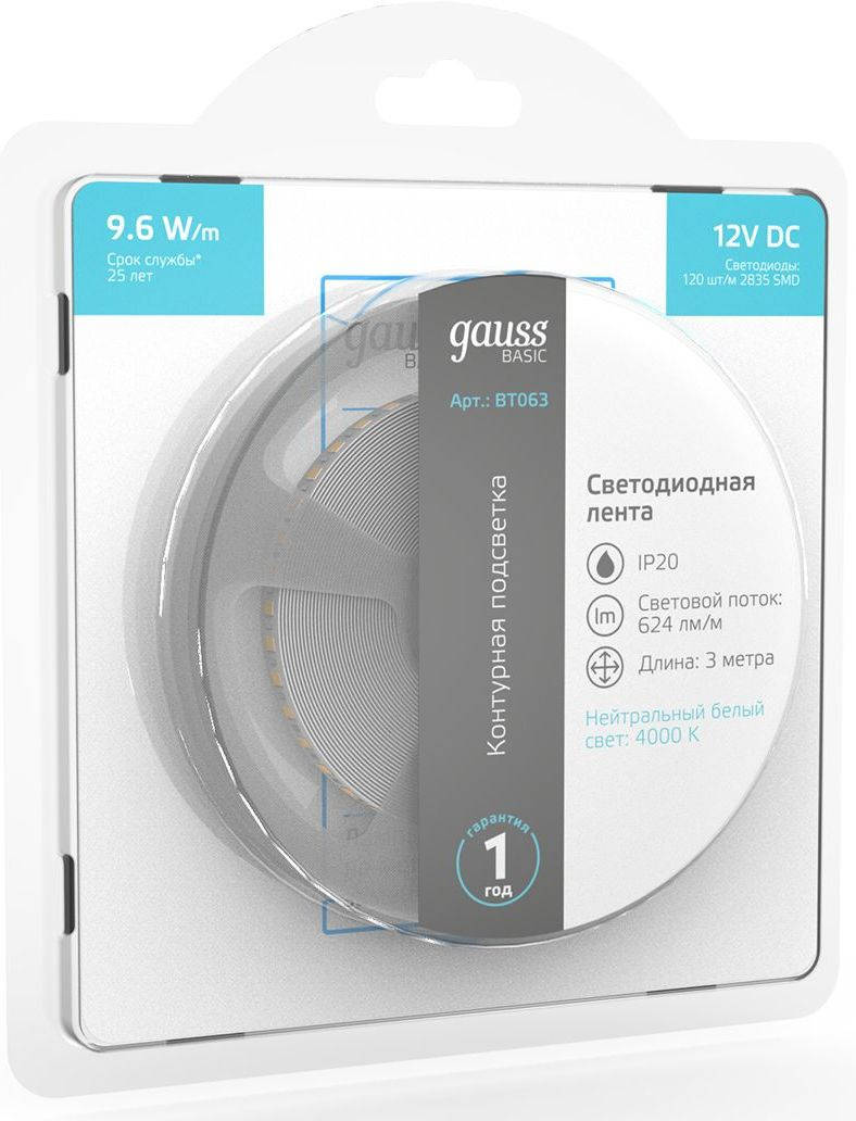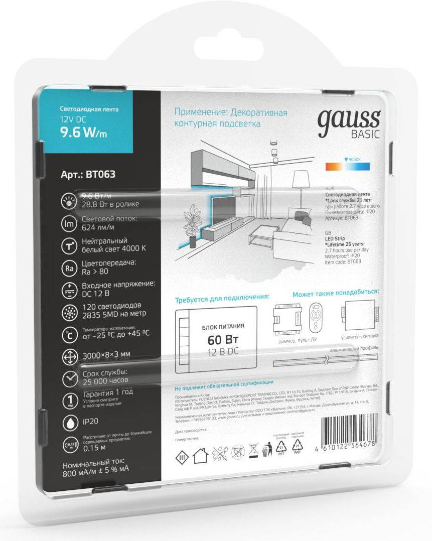 Светодиодная лента GAUSS Лента светодиод. Basic 3м