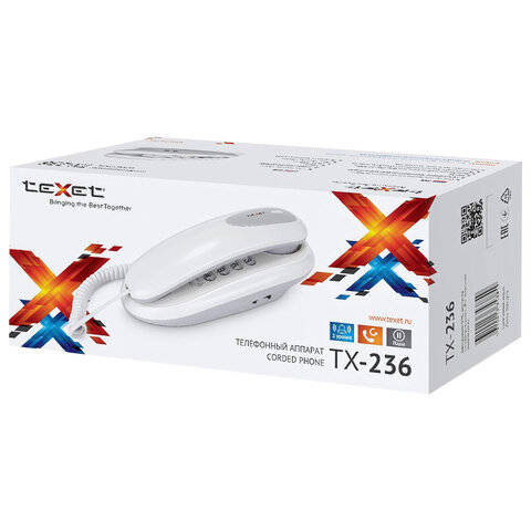 TEXET TX-236 — это классический кнопочный телефон, ориентированный на простоту и удобство использования, особенно для тех, кто предпочитает минимализм и надёжность. Проводной телефон teXet TX-236 выполнен в симпатичном компактном дизайне. Удобная трубка и эргономичные формы проводного телефона делают его и незаменимым домашним помощником. Модель не займет много места, так как имеет небольшие размеры и настенное крепление.
