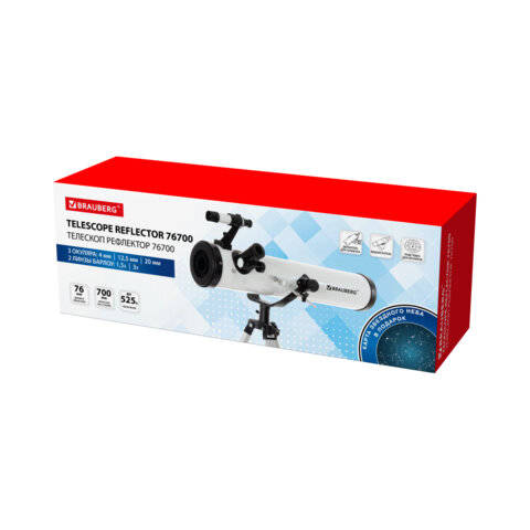 Телескоп Brauberg рефлектор астрономический, увеличение 525х, объектив 76 мм, фокусное расстояние 700 мм, видоискатель, 76700, 391398