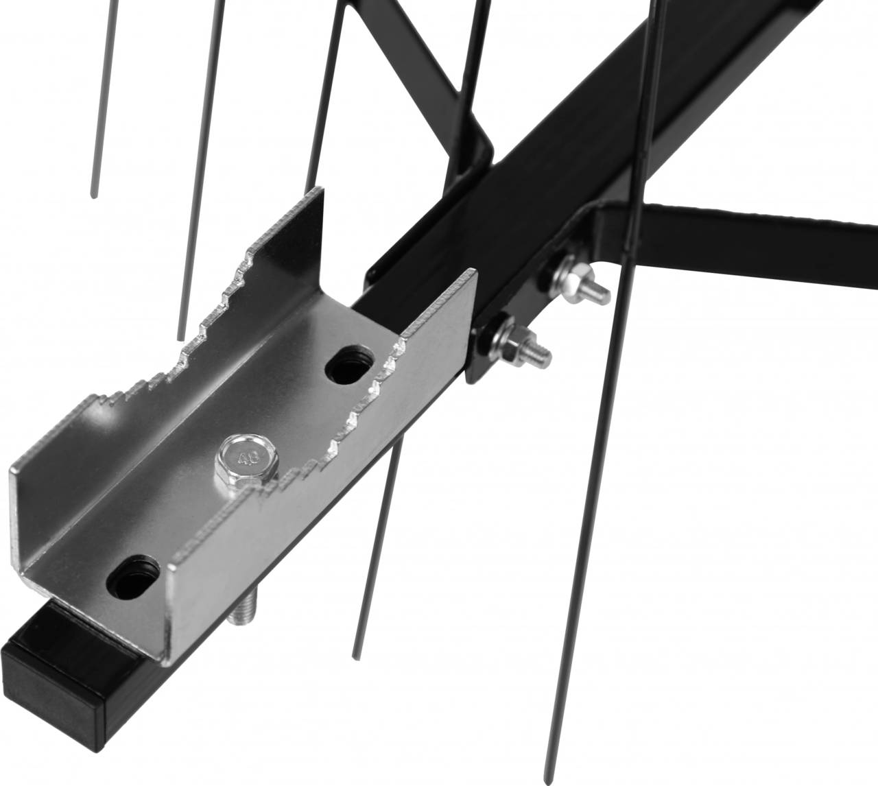 Для установки антенны на мачту имеется узел крепления (скоба с зажимом). Вибраторы метрового диапазона крепятся под углом 120 градусов. Рекомендуется установка на удалении до 80 км от передающего центра.