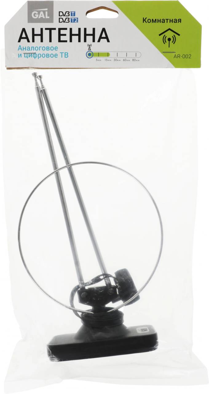 Телевизионная антенна GAL Антенна телевизионная AR-002 2дБ пассивная серебристый каб.:1м