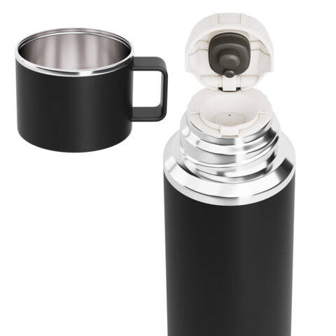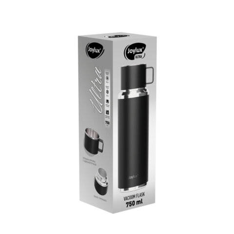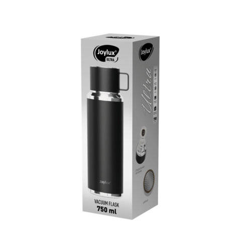 Термос Joylux 0,75 л ULTRA, нерж. сталь SUS316, крышка/кружка, питейник, сито, черный матовый, 700314