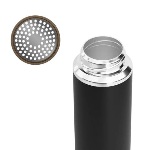 Термос JOYLUX ULTRA — продуманное сочетание функциональности и эстетики: его крышка из нержавеющей стали служит удобной кружкой с ручкой и эффектной зеркальной полировкой, а винтовая пробка с питейником позволяет наливать напиток, не открывая крышку полностью. Внутри термоса установлено ситечко из нержавеющей стали — с ним вы можете заваривать чай или фруктовые настои прямо в термосе, не беспокоясь о попадании чаинок или ягод в напиток. Корпус имеет порошковое покрытие черного цвета, которое не только обеспечивает термосу стильный дизайн, но и препятствует появлению мелких царапин при долгосрочном использовании.