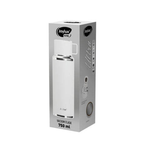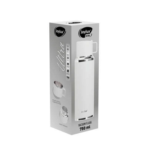 Термос Joylux 0,75 л ULTRA, нерж. сталь SUS316, крышка/кружка, питейник, сито, белый матовый, 700315