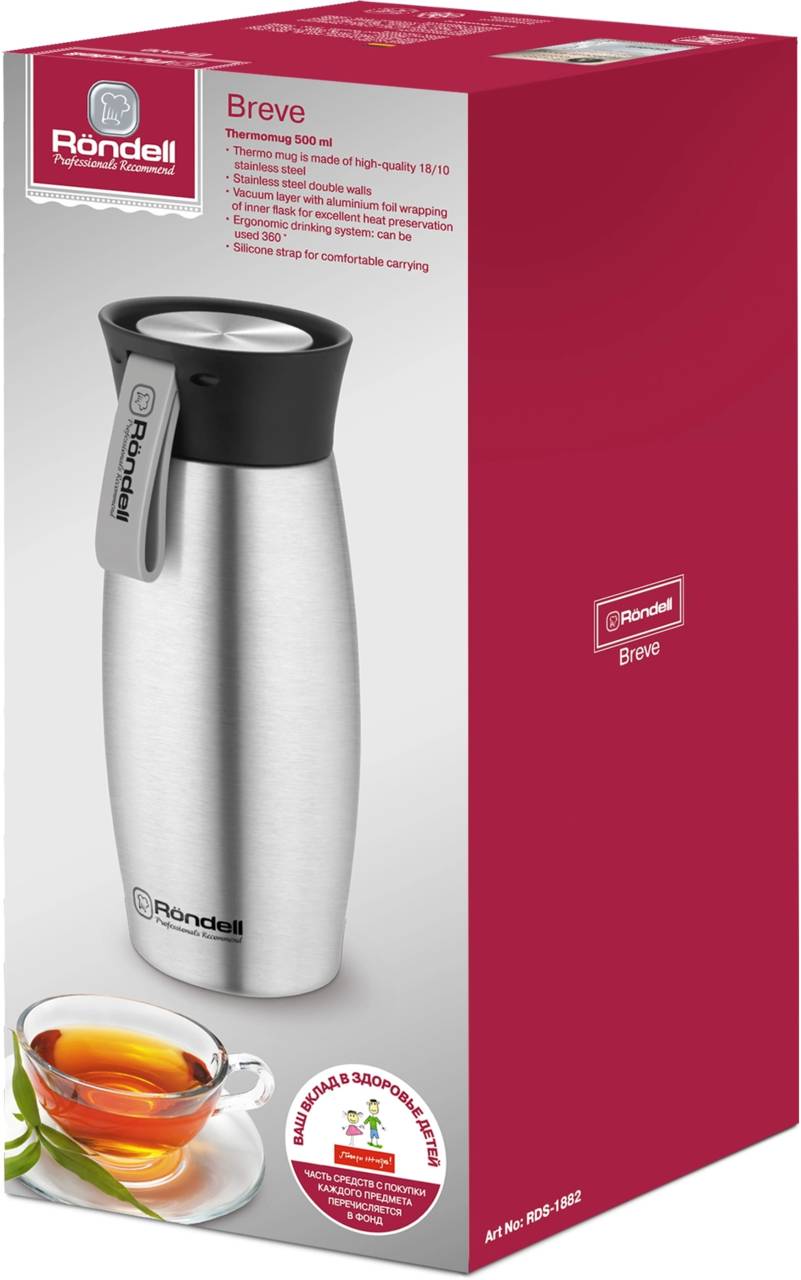 Термос RONDELL Термокружка для напитков Breve RDS-1882 0.5л. стальной матовый картонная коробка