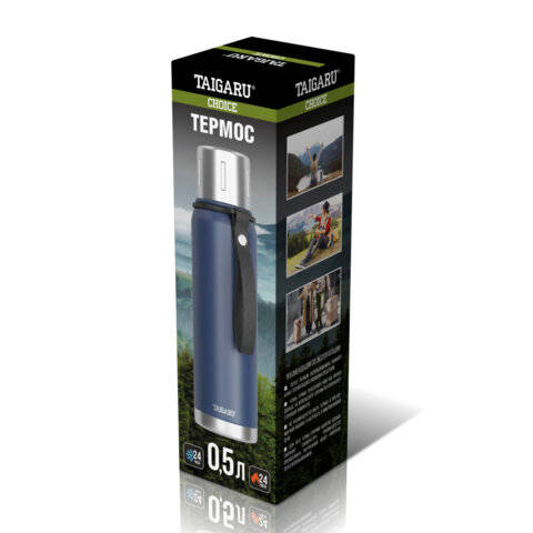 Термос TAIGARU 0,5л CHOICE, нержавеющая сталь SUS316, крышка/кружка, ремешок, синий матовый, , 700312