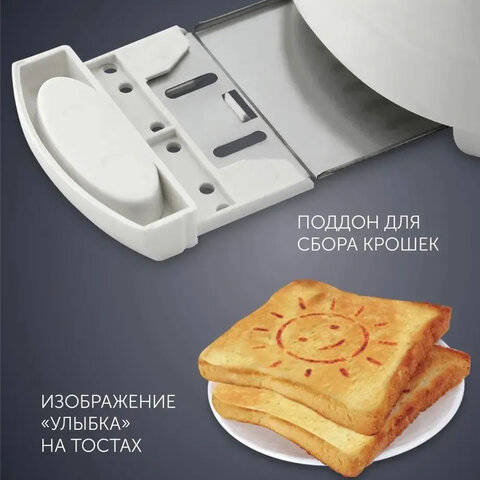 Тостер POLARIS PET 0702L, 750 Вт, 2 тоста, 6 режимов, механическое управление, пластик, белый, 03277