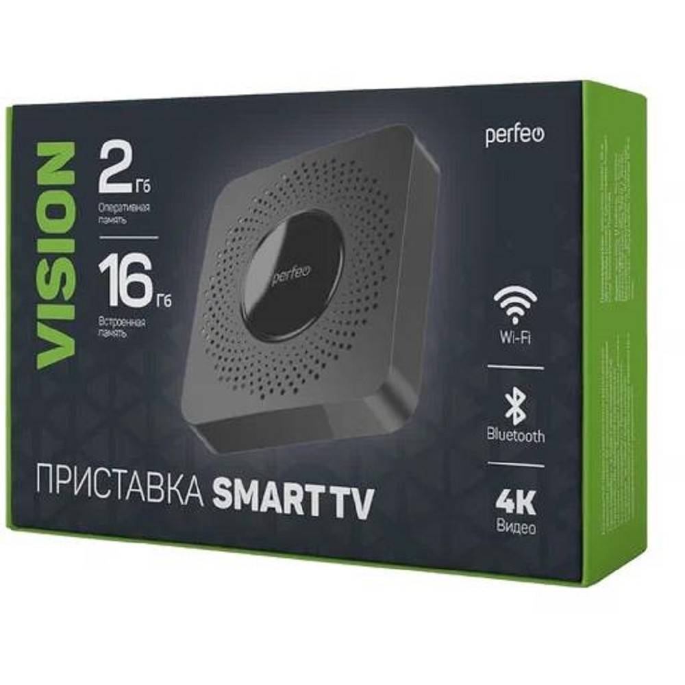 ТВ-приставка Perfeo SMART TV BOX приставка "VISION 2/16",Allwinner H618,Android 12, 2Gb/16Gb,Пульт Bluetooth