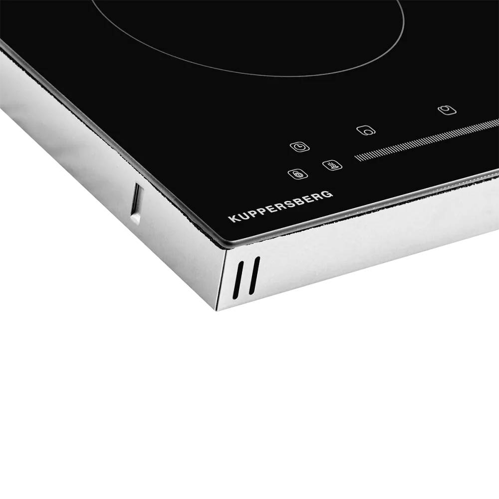 | Описание: | Электрическая варочная панель Kuppersberg ECS 321 сочетает компактность и передовые технологии для современных кухонь. Выполненная в черном цвете из прочной стеклокерамики Kanger, эта модель типа «Домино» идеально встраивается в ограниченное пространство. Ее габариты (28×52×5 см) позволяют интегрировать панель даже в небольшие кухонные гарнитуры, а технология Hi-Light гарантирует мгновенный нагрев и равномерное распределение тепла для эффективного приготовления блюд. Удобное управление Панель оснащена инновационным слайдерным сенсорным управлением, расположенным в передней части. Эта система позволяет регулировать мощность всего одним движением пальца вдоль сенсорной шкалы, исключая необходимость многократных нажатий. Девять уровней мощности обеспечивают точную настройку температуры под любые кулинарные задачи — от деликатного томления до интенсивного кипячения. Цифровые дисплеи отображают текущие настройки, а функция блокировки панели предотвращает случайное изменение параметров, что особенно важно для семей с детьми. Функциональность Две конфорки разного диаметра адаптируются под посуду любого размера благодаря уникальной зоне расширения. Задняя конфорка работает в двух режимах мощности (1–2 кВт), а передняя (1,2 кВт) поддерживает экспресс-нагрев. Функция Booster ускоряет закипание воды, а интеллектуальный таймер автоматически отключает конфорку по истечении заданного времени, предотвращая подгорание. Автоматическое отключение срабатывает при отсутствии взаимодействия с панелью, повышая безопасность и энергоэффективность. Мощность подключения составляет 3 кВт, что соответствует стандартам бытовой электросети. Безопасность и практичность Индикаторы остаточного тепла визуально сигнализируют о температуре поверхности даже после отключения конфорок, снижая риск ожогов. Защитное отключение предотвращает перегрев, а прочная стеклокерамика Kanger устойчива к механическим повреждениям и термоударам. Уход за панелью максимально прост: гладкая поверхность без рельефных элементов легко очищается мягкой тканью с минимальным количеством моющего средства. Прибор снабжен кабелем длиной 1 без вилки — деталь можно подобрать под определенную розетку. |