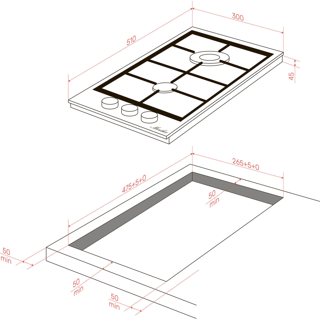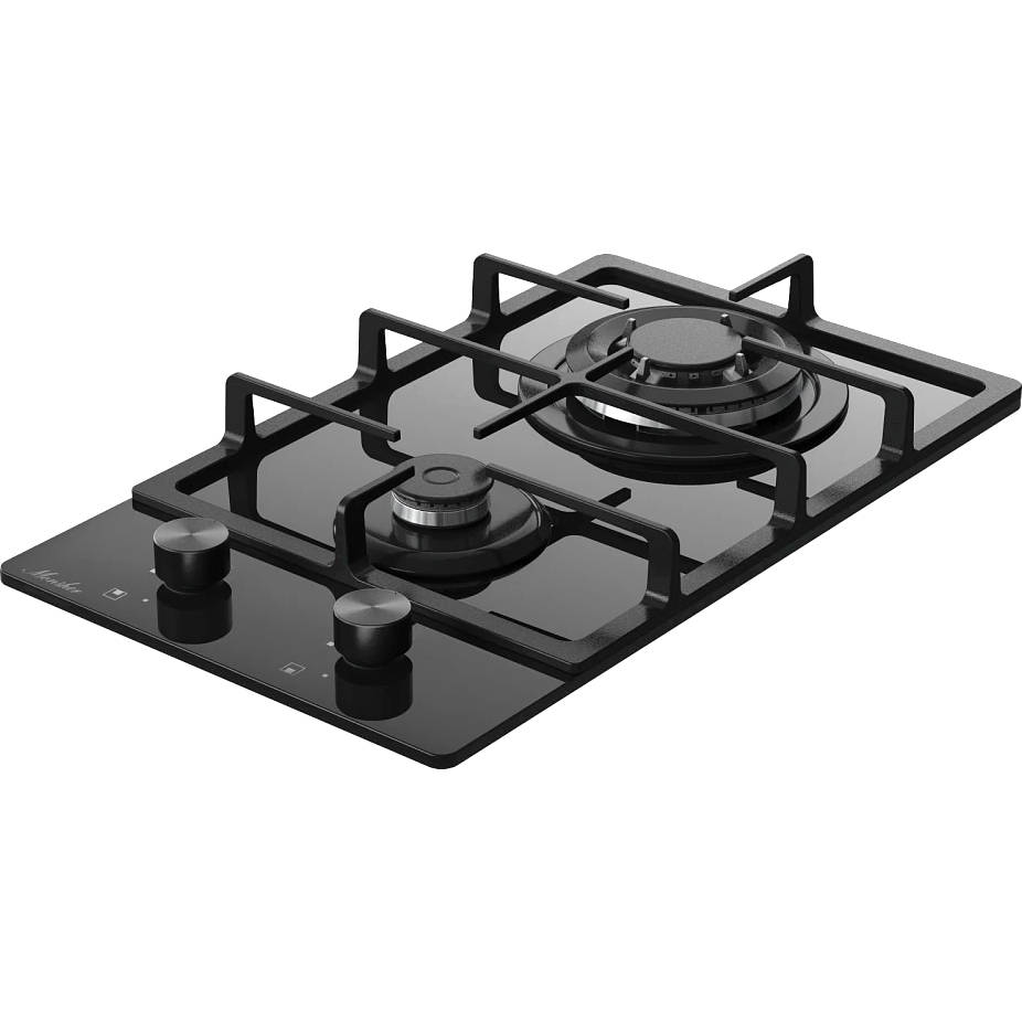 Газовая варочная панель Monsher MGG 33 Noir из коллекции High-Tech — модель типа «Домино» — ширина составляет всего 30 см. Устройство подойдет для небольших кухонь и тех, кому для приготовления пищи достаточно двух конфорок. Также несколько подобных панелей можно объединить и создать индивидуальную комбинацию под собственные потребности.