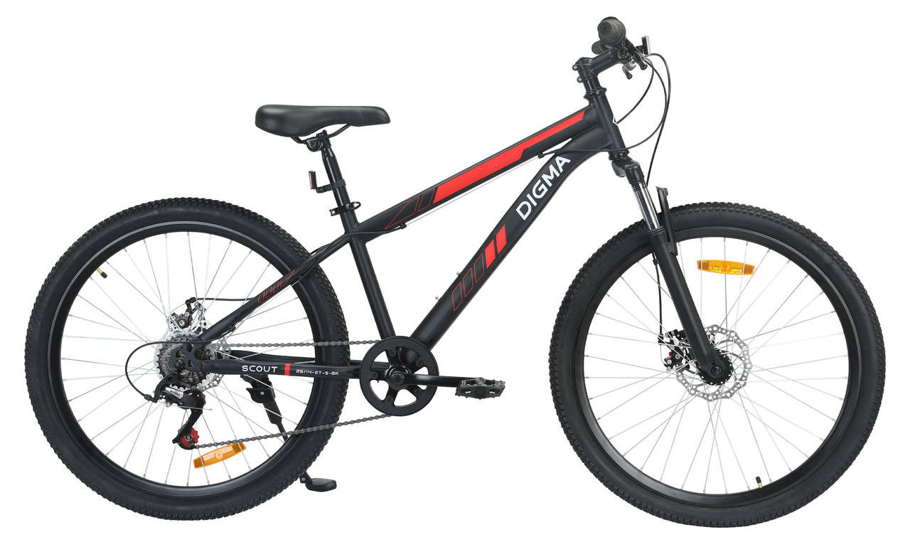 Велосипед Digma Scout горный рам.:14" кол.:26" черный 16.3кг (SCOUT-26/14-ST-S-BK)
