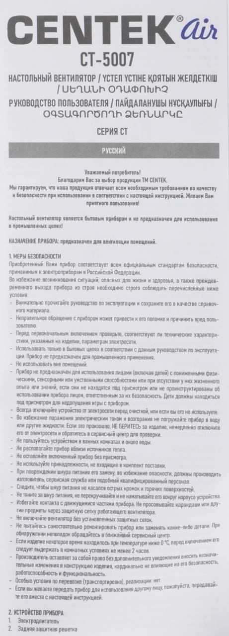 | Описание: | Вентилятор Centek настольный CT-5007 30Вт скоростей:3 белый |
