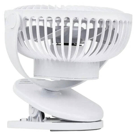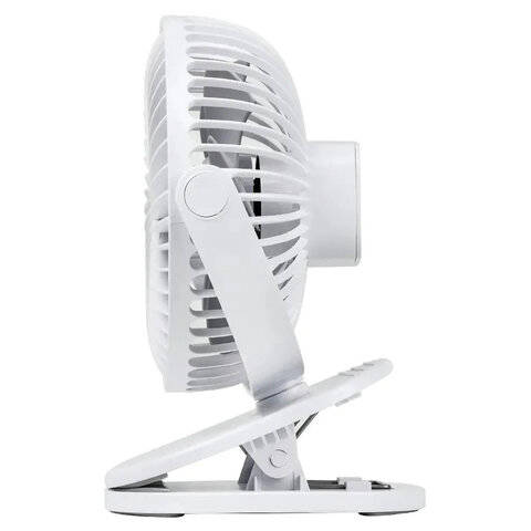Прибор потребляет всего 5 Вт, обеспечивая экономичное и бесшумное охлаждение. Управление — механическое, интуитивно понятное даже для детей. Корпус выполнен из прочного пластика, а белый цвет придаёт устройству аккуратный и современный вид. Компактные размеры и небольшой вес делают вентилятор удобным в использовании и транспортировке.