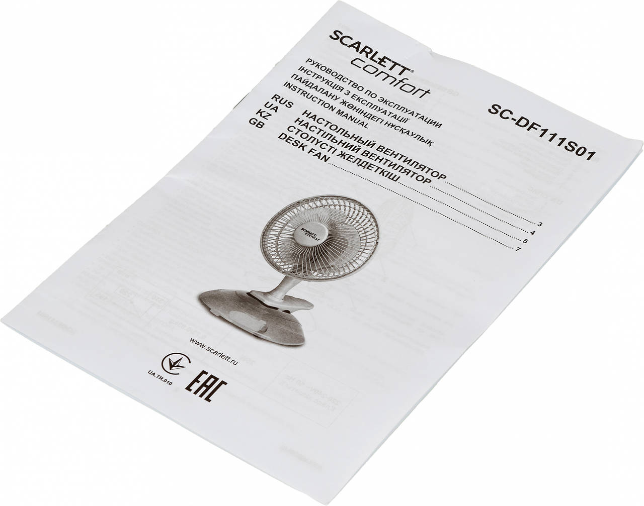 Вентилятор SCARLETT настольный SC-DF111S01 25Вт скоростей:2 белый