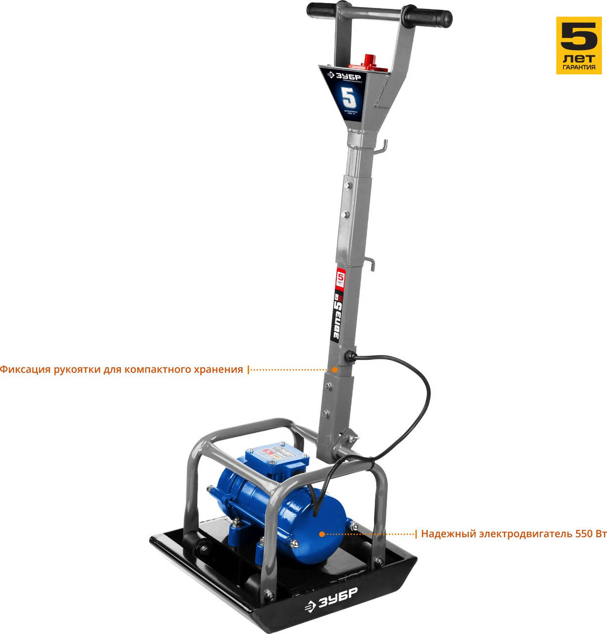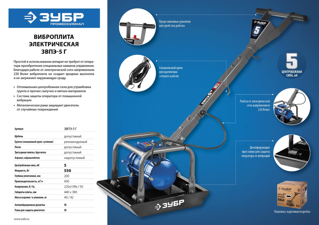 Виброплита ЗУБР Профессионал ЗВПЭ-5 Г 550Вт 0.75л.с. электрический серый