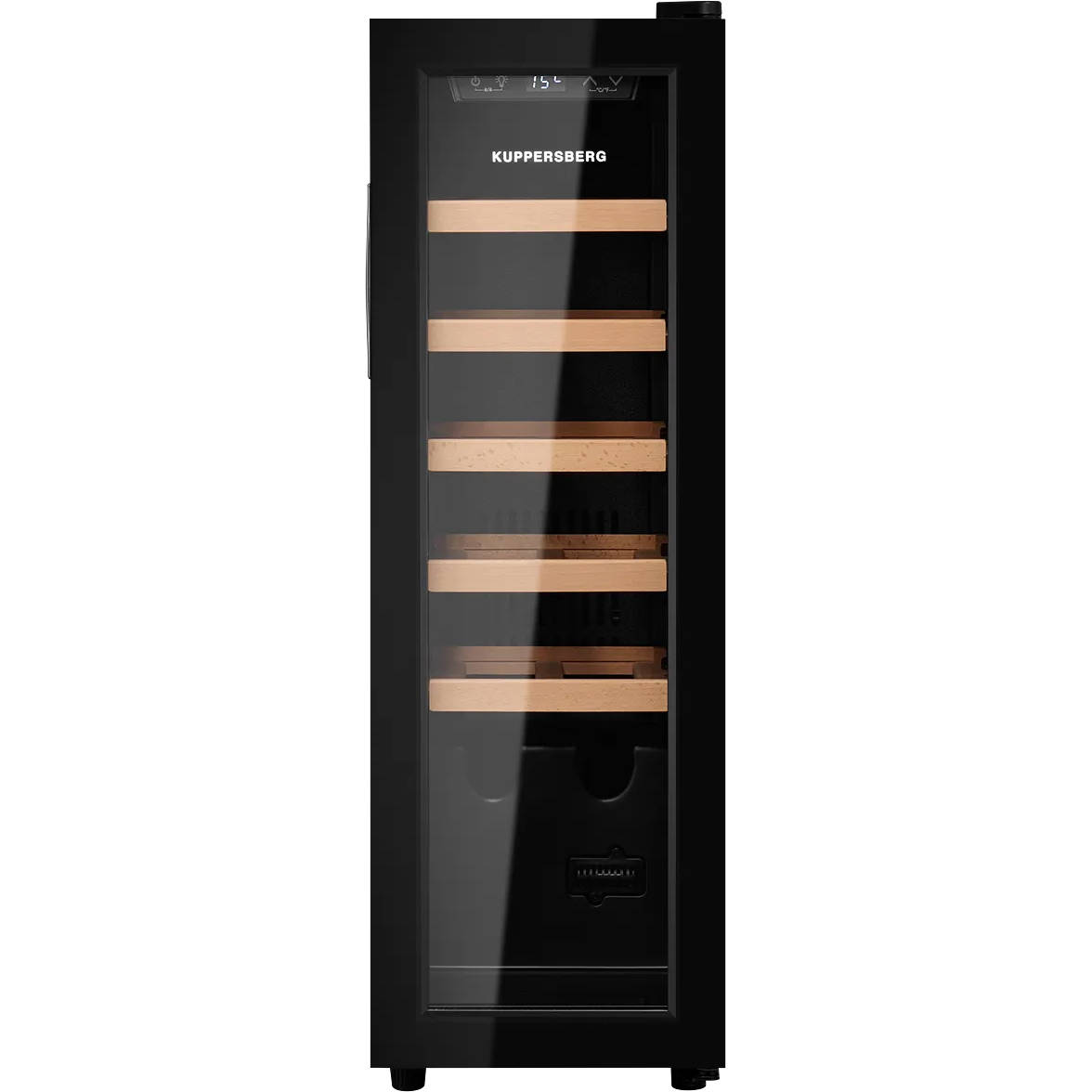 Винный шкаф KUPPERSBERG RSW 81 представляет собой изысканное решение для истинных ценителей вина. Выполненный в современном стиле High-Tech, он привлекает внимание своим элегантным черным цветом и стильным внешним видом. Стеклянная дверь обеспечивает прекрасный обзор содержимого, сохраняя при этом его защищенность.