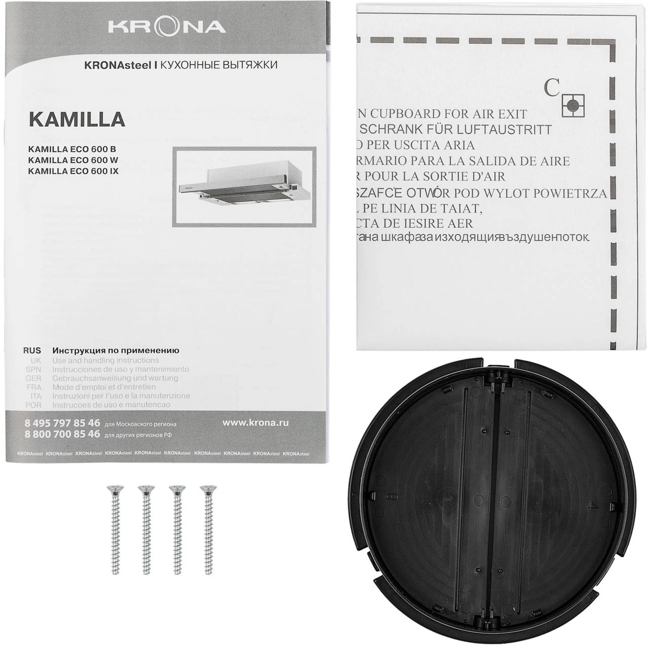 Вытяжка встраиваемая Kamilla ECO 600 W белый управление: кнопочное (00026736)