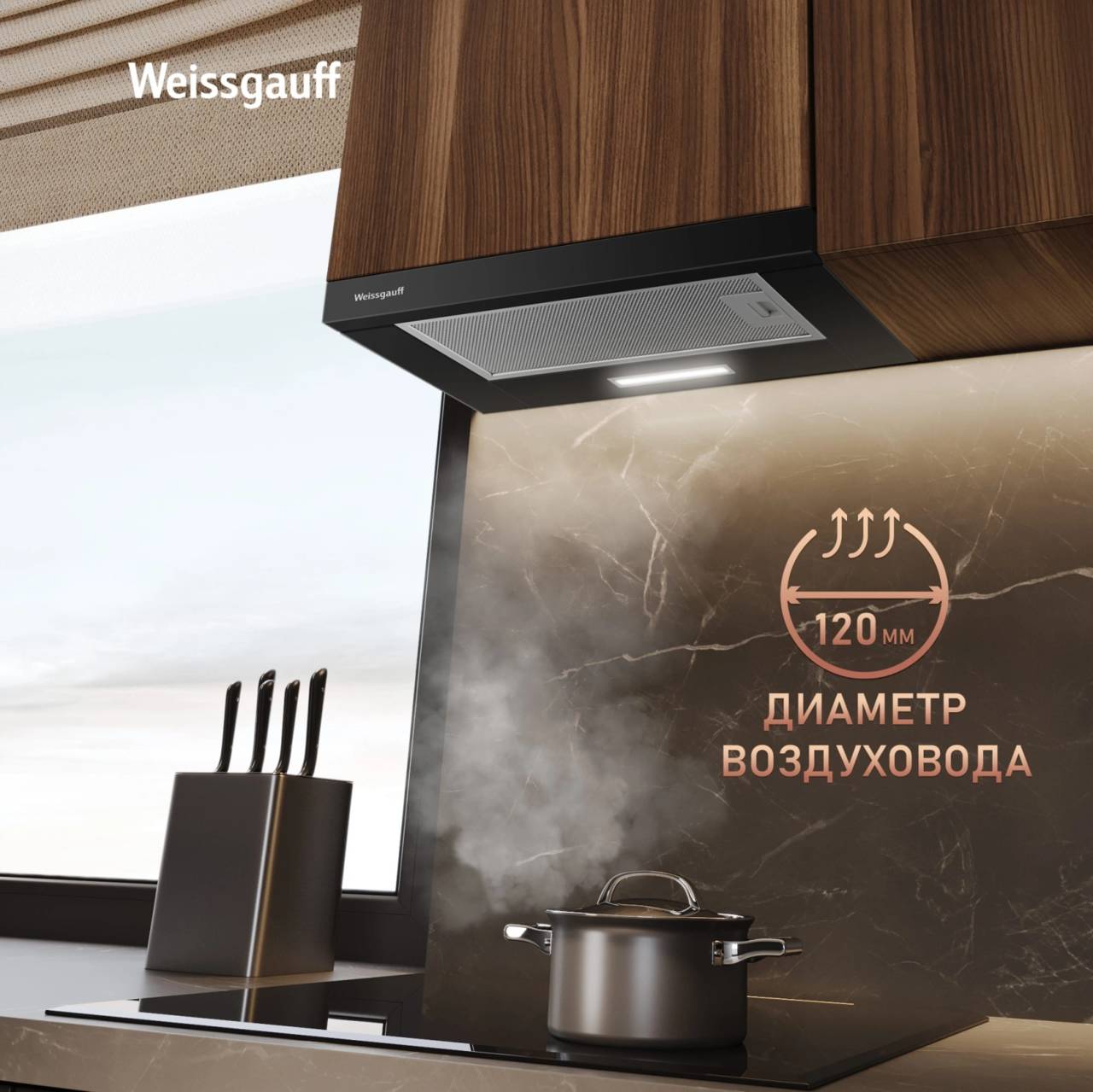 Вытяжка Weissgauff встраиваемая TEL 500 Glass черный управление: кулисные переключатели