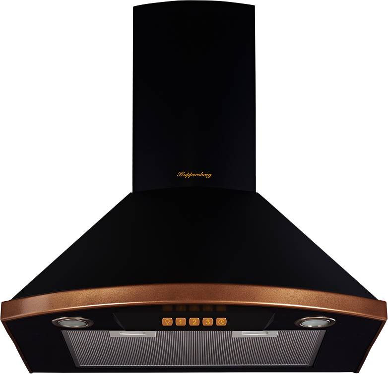 Вытяжка Kuppersberg Настенная вытяжка, ширина 60 см, отвод/рециркуляция, 650 м3/час, электронное управление, 3 скорости, галогеновое освещение 2х20 Вт, анодированные алюминиевые жироулавливающие фильтры, угольный фильтр С6С (опция), 42 дБ, цвет чёрный, отделка цвета бронза (BONA 60 B Bronze)