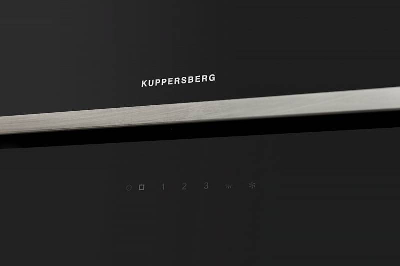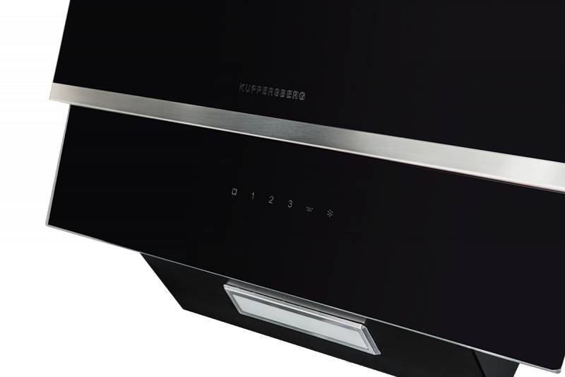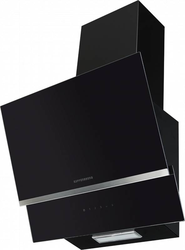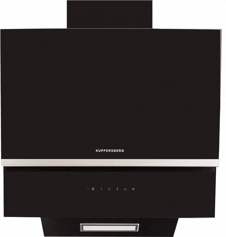 Вытяжка Kuppersberg Настенная вытяжка, ширина 60 см, отвод/рециркуляция, 650 м3/час, сенсорное управление, 3 скоростей, светодиодное освещение 2х1 Вт, металлические жироулавливающие фильтры, угольный фильтр KF-СM (опция), 42-47 дБ, система предупреждения о загрязнении фильтров, пульт ДУ, турбо-режим, цвет: черный / планка нержавеющая сталь (F 600 B)