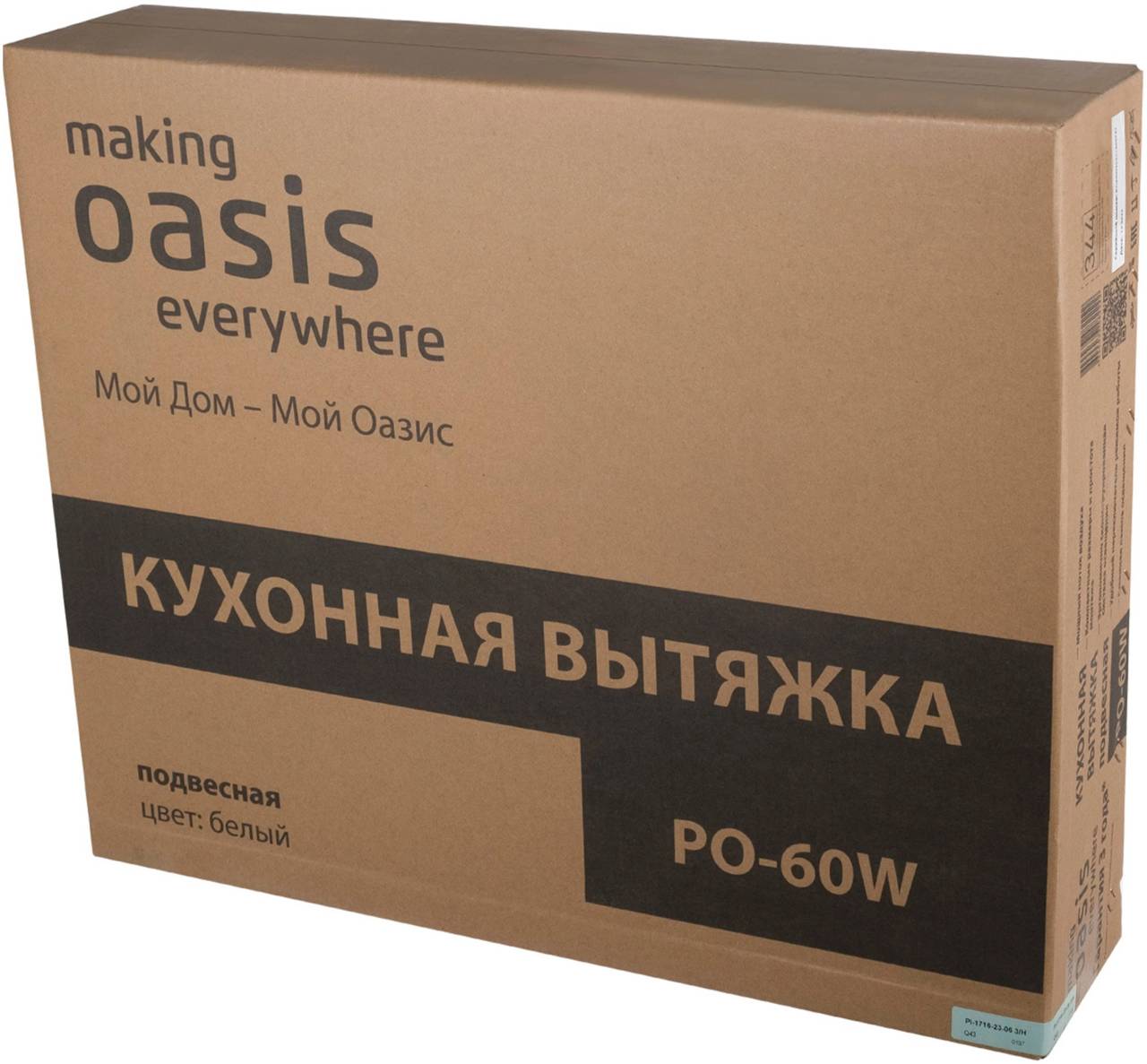 Вытяжка Oasis козырьковая PO-60W белый управление: кнопочное