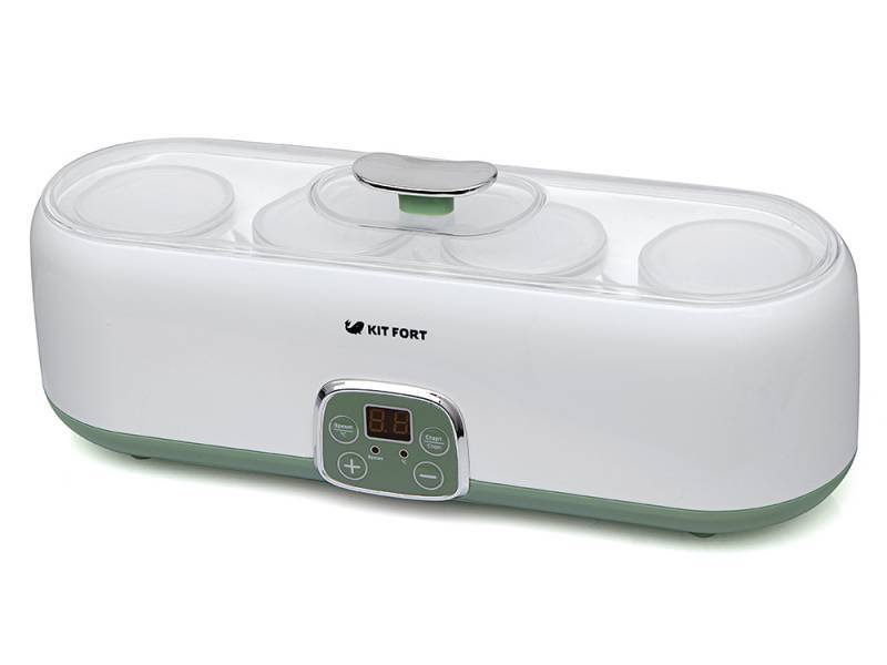 Йогуртница KITFORT Йогуртница Kitfort KT-2007 4б. 200мл упр.:электрон. белый/зеленый (KT-2007)