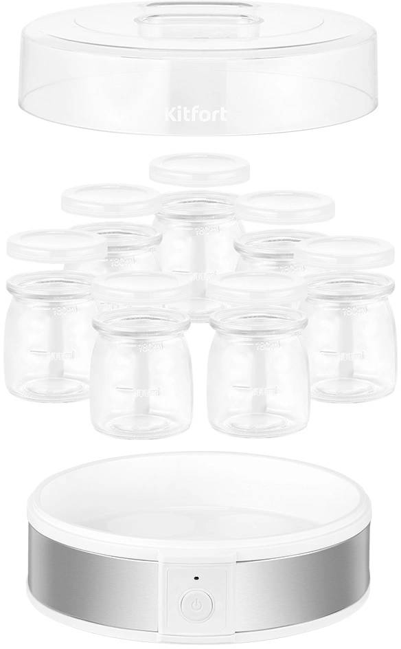 Йогуртница KITFORT КТ-6405 20Вт 7б. 180мл упр.:механич. серебристый/белый